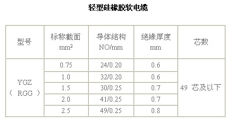 產(chǎn)品特性: 1、額定溫度:-50℃~+200℃(高使用環(huán)境溫度:200℃ 低使用環(huán)境溫度: -50℃) 2、額定電壓:YGZ300/500V、YGC450/750V 3、導 體:單根或多股鍍錫銅絲 4